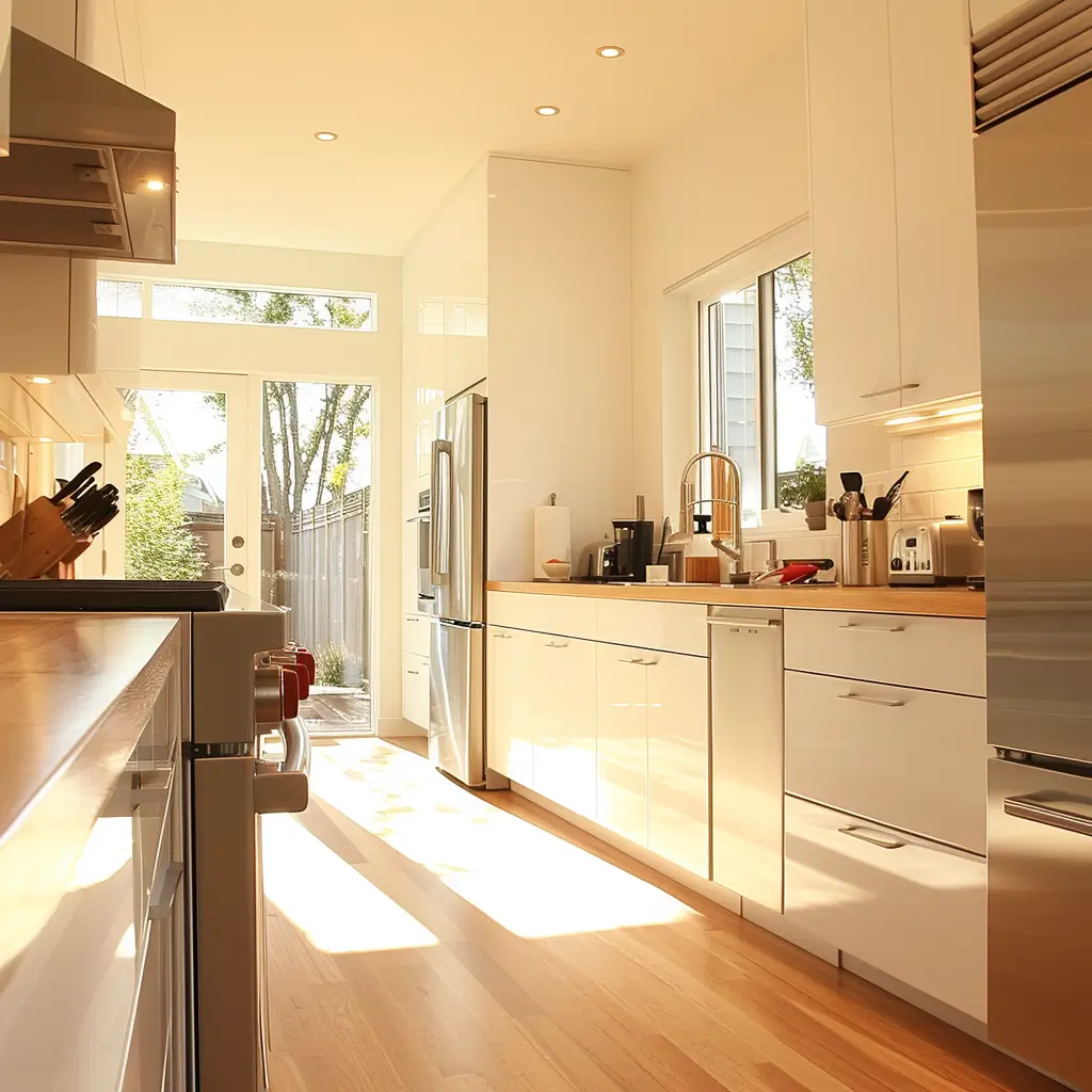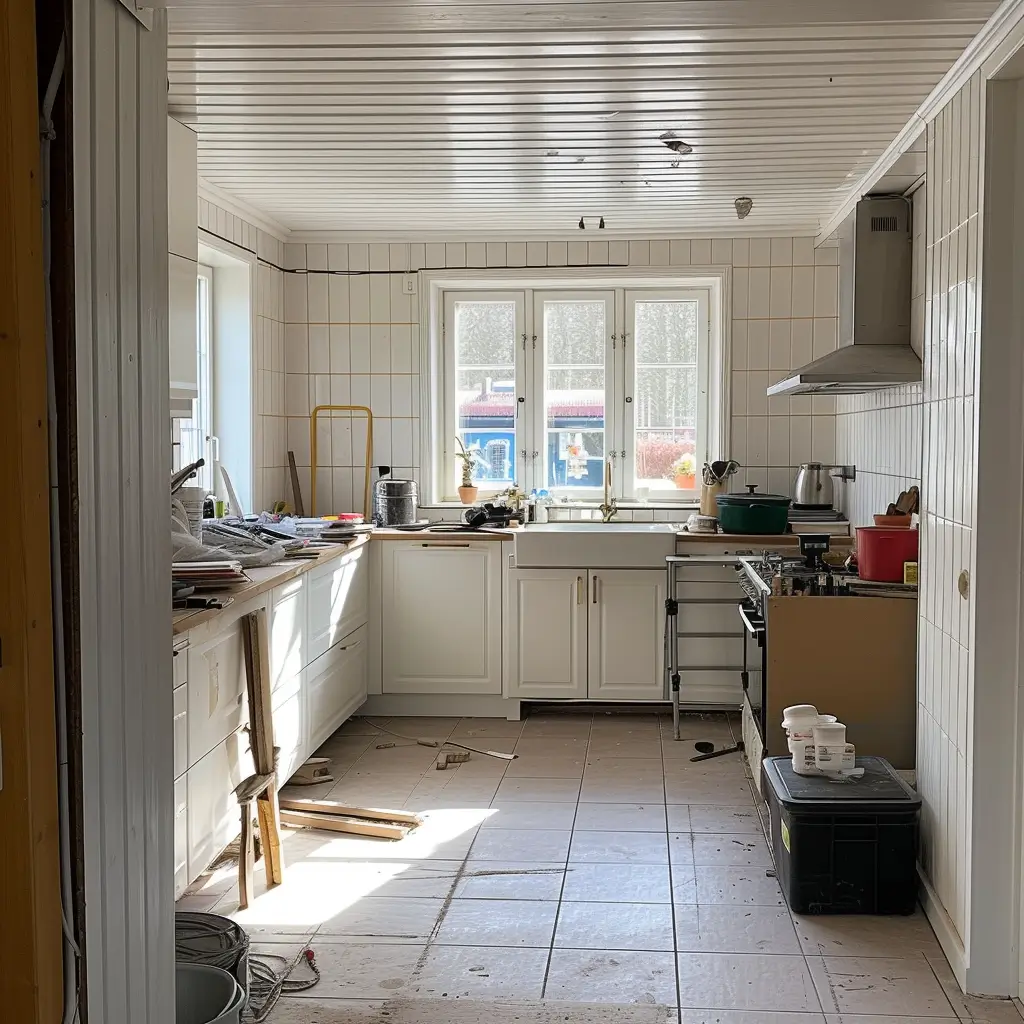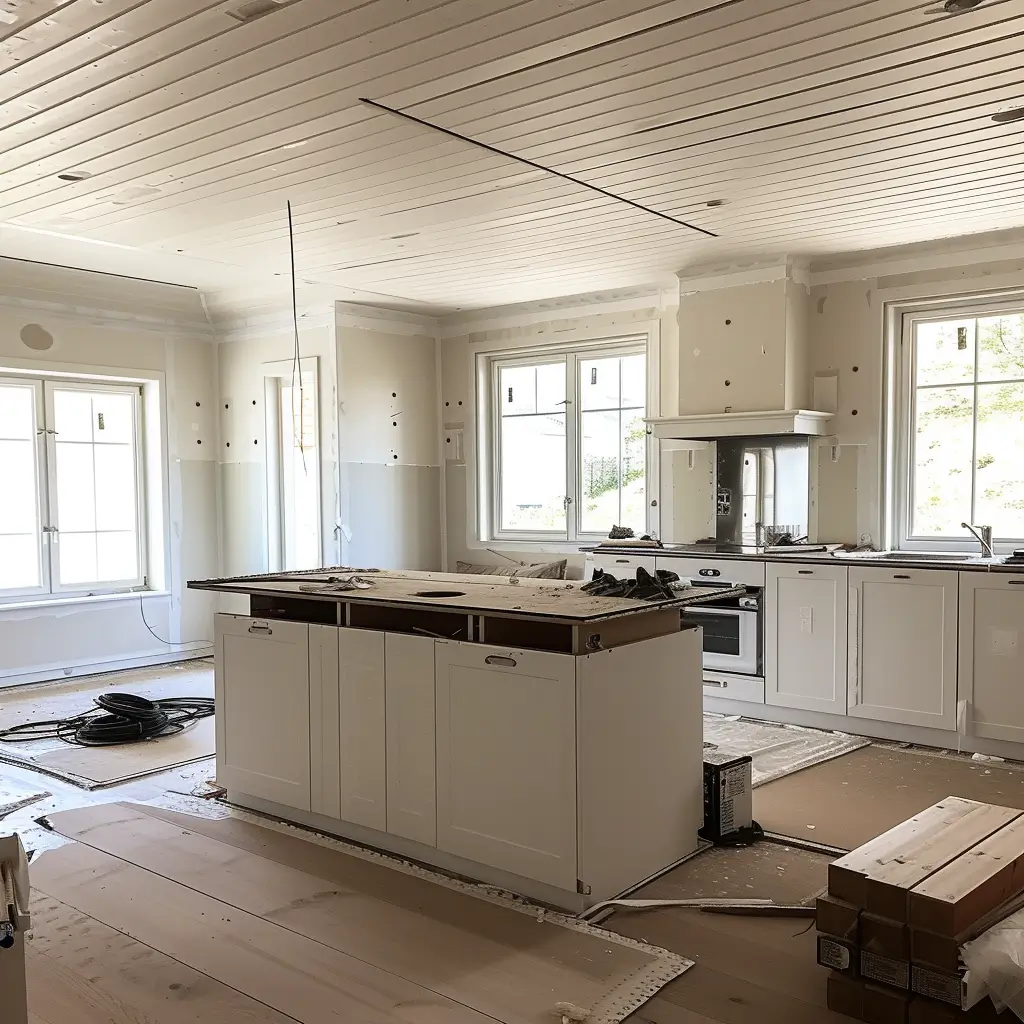 Dessutom uppgraderar vi el- och VVS-installationer för att stödja strukturen i ditt nya kök. En fullständig ombyggnad av köket görs för att renovera varje hörn av ditt hem enligt dina idéer och estetik. Slutligen utförs snickeriarbete, väggmålning och installation av nya möbler för att förvandla ditt drömhem till en levande plats.